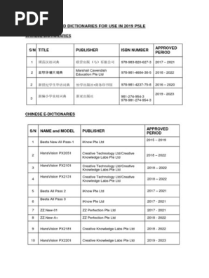 ![LIST OF APPROVED DICTIONARIES FOR USE IN 2017 PSLE - [PDF Document] LIST OF APPROVED DICTIONARIES FOR USE IN 2017 PSLE - [PDF Document]](https://reader015.staticloud.net/reader015/html5/20180706/589ad2691a28ab23468ba1bf/bg2.png)